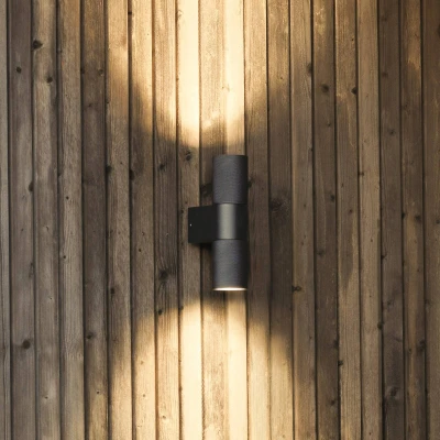 2-bulb outdoor wall lamp Temi: elegance meets functionality Experience the transformative power of light with the Temi outdoor wall lamp. This light, made from high-quality aluminium, combines elegance with functionality. Its modern design blends seamlessly into any exterior façade and offers an impressive lighting effect thanks to the up/down light direction. The 2-bulb construction ensures optimum illumination and sets aesthetic accents on any wall. With an IP code of IP54, the Temi outdoor wall lamp is optimally protected against dust and splashing water, making it the ideal choice for outdoor use. Although a dimmer is not included, the brightness can be individually adjusted using an external dimmer to create the desired atmosphere.
