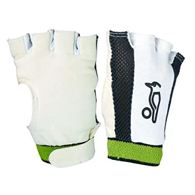 Kookaburra Fingerless Padded Chamois Wicket Keeping Inners, Adult, White/Black/Green