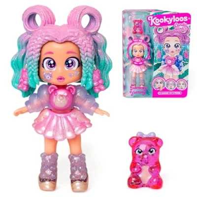 KOOKYLOOS Candy Land Series Gummy Yummy Collectible Doll from the Series, Contents: 1 Doll, Clothes and Shoe Set, Accessory Animal, has 3 Different Brusies