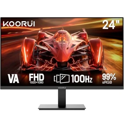 Stunning visual clarity: Experience sharp and vivid images with a 61 cm (24") Full HD (1920 x 1080) IPS display that covers 99% of the sRGB color gamut and displays 16.7 million colors. The ultra-wide 178° viewing angle ensures consistent picture quality from any perspective, perfect for work and entertainment. Ultra-smooth performance: Enjoy smooth movement with a 120Hz refresh rate, which minimizes screen tearing and stuttering. Whether you're doing office tasks, watching HD content or playing fast-paced games, this monitor offers a smooth and immersive experience. Ergonomic design and VESA mount: Tilt the display from -5° to 20° for your viewing comfort. The monitor also supports a 100 x 100mm VESA bracket, allowing for easy installation on the wall or arm. The ultra-thin profile and modern appearance save space on the computer and enhance any home or office decor. Eye Care Technology: Designed with anti-blue light and anti-glare functions, this monitor helps reduce eye fatigue during prolonged use. Eye protection mode adjusts screen brightness and color temperature to keep your eyes comfortable and focused all day long. Versatile connectivity: Equipped with HDMI 1.4, VGA, and audio ports, the monitor connects effortlessly to PCs, laptops, game consoles like Xbox and more. Ideal for multitasking, streaming or gaming: Expand your possibilities with reliable connectivity. Reliable quality and support: KOORUI guarantees premium quality with a 12-month replacement warranty and professional technical support. If you notice any damage, malfunctions or missing accessories, our team is ready to help you and you can rest assured with every purchase.