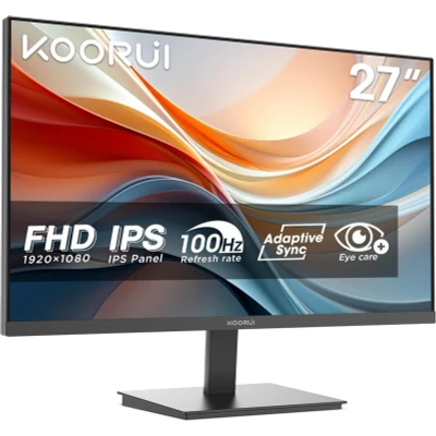 JoybuyThe KOORUI E2711F 27 Inch FHD Monitor features a 100Hz IPS display with Adaptive Sync, delivering smooth visuals and vibrant colors for gaming and work. With Eye Care technology, VESA mount support, HDMI and VGA connectivity, it’s ideal for both home offices and gaming setups.
