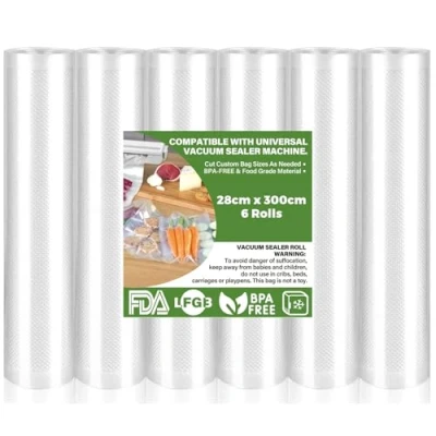 【Suitable for all Vacuum Sealer Machines】The food vacuum roller is compatible with all major brand vacuum sealers. You can make a small vacuum cleaner bag in seconds with a special size. Professional freezer bags are a great helper for healthy eating. 【Safer - BPA Free】Made of durable and flexible BPA-free material, the food vacuum bags are perfect for storing, freezing and boiling food.Suitable for freezers, refrigerators, microwave ovens and vacuum cookers. 【Reusable】Vacuum bags are not easy to tear or puncture and can be cut to length. After cleaning (But in a good way!) You can reuse the bag, which not only saves and protects the environment. 【Ensure Nutrition】Our food vacuum roller can store a variety of foods, including meat, cheese, seafood, vegetables, fruits, pasta, etc. Food vacuum film retains its original freshness, flavor and nutritional value by avoiding absorbing moisture from the air, preventing them from becoming brittle and moist and slowing down their deterioration.Keep food fresh for up to 6 times longer 【Best Partner for Your Kitchen】Vacuum bags can be used in many situations. They protect everything from the harmful effects of moisture and oxygen. You can use the food vacuum rolls to protect jewelry, photographs, letters, important documents and medicines., Manufacturer: KOOSREEL