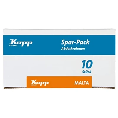 Malta switch range: impresses with its special design, which is achieved by the rectangular switch and socket inserts. The switch range is designed so that the cover frames can still be mounted vertically and horizontally Single frame for vertical and horizontal mounting in economy pack with 10 pieces Colour: Arctic white High-quality workmanship, Manufacturer: Kopp