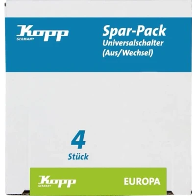The EUROPA switch range is a classic with simple, but imperishable style. EUROPA PROFESSIONAL PACK: 4 Universal switch (off and change-over switch) creamy white, Weight: 0.7165023515 pounds, Manufacturer: Kopp
