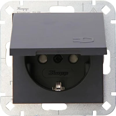 Protective contact socket The HK 07 switch range from Kopp for professional use. An elegant design and the high-gloss surface in the colour anthracite blend seamlessly into almost all furnishing trends Kopp brand, Manufacturer: Kopp