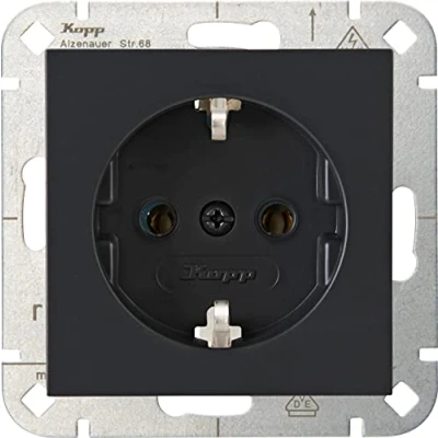 Protective contact socket The HK 07 switch range from Kopp for professional use. An elegant design and the high-gloss surface in the colour anthracite blend seamlessly into almost all furnishing trends Kopp brand, Manufacturer: Kopp