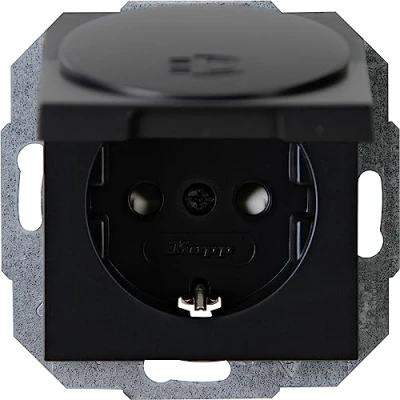 Kopp Athenis 940150089 Protective Contact Socket with Lid, 1 Way Touch Protection, 16 A, 250 V , IP20, Black, Matte Surface