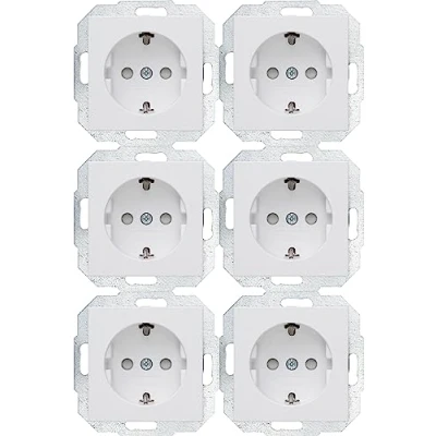 Kopp Athenis 943032056 Professional Pack, Contents 6 x Earthing Contact Sockets, 1 Way with Touch Protection, 16 A, 250 V , IP20, Arctic White, Matte Surface