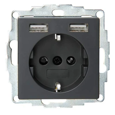 Kopp Athenis Flush Mounted Earthing Contact 2 USB Charging sockets, Anthracite, 296215182, Charcoal, Steckdose + 2xUSB