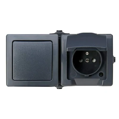 2-way combination with a centre earthing contact socket and an off-change switch Nautic in anthracite colour for horizontal installation The Nautic switch range - our robust, elegant surface-mounted wet room range with a wide range of products Protection class IP 44 suitable for use in protected outdoor areas Only for countries with centre protection contact system (MSK) - not for use in Germany, Austria For rigid conductors from 1.5 mm² to 2.5 mm² - large wiring space offers enough space for all necessary cables, Manufacturer: Kopp