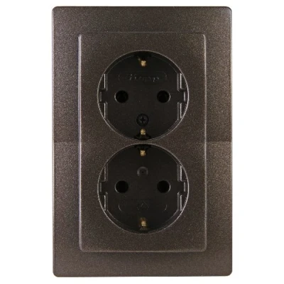 Kopp Paris protective contact socket, 2 way, without protection, complete device for installation in a 1 way switch box Ø 60mm, 16A, 250V , IP20, rosewood brown, 941126061, piece