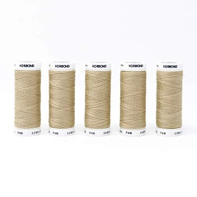 KORBOND 500m Beige Polyester 5 x 100m Reels Thread for Hand Sewing Machines No Shrinkage Ideal Mending, Tailoring, Quilting, Crafting, Repairs and Embellishment