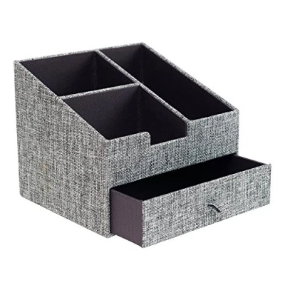 Korbond Desk Organiser with Compartments and Drawer Multi Purpose Storage Grey Textured Fabric