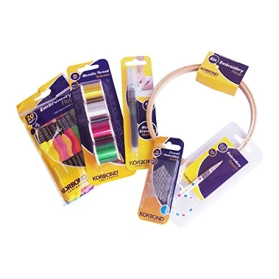 With over 60 years of trading, Korbond is the UK’s No. 1 trusted brand of sewing, crafting & clothes care tools and accessories Pack contains: x 1 6” Bamboo Embroidery Hoop, x 20 Skeins Embroidery Floss, x 1 Water Erasable Marker x 4 40m (160m total) Metallic Thread, x 16 Crewel/Embroidery Needles & x 1 Pair Embroidery Scissors Korbond Embroidery Scissors feature stainless steel precision ground blades to ensure an accurate cut every time. Guaranteed to cut right to the tip of the blade The lightweight body makes these shears comfortable to use for extended periods of time, suitable for both left and right-handed users Korbond 6-inch (15cm) Dia. x 1cm deep lightweight Embroidery Hoop is made from 100% Bamboo with high quality adjustable outer ring to ensure fabric remains taut whilst working on embroidery and needlework projects. Provides a more secure hold than alternative plastic embroidery hoop Included components: korbond 43 piece complete embroidery starter kit – includes, floss, bamboo hoop, needle & scissors – deal for beginner to expert