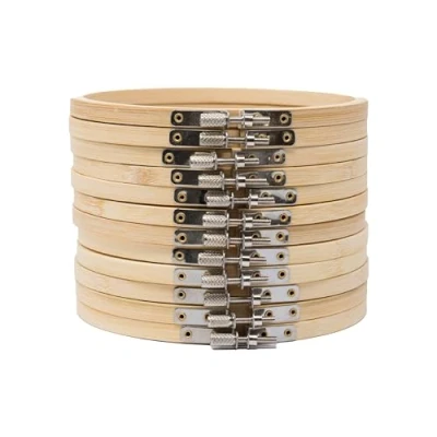 PACK CONTAINS: 12 Bamboo Embroidery Hoops 6 Inch SIZE: This Embroidery Hoop is 6 inches / 15cm in diameter NATURAL MATERIAL: Korbond Embroidery Hoops are constructed from natural Bamboo, which is the ideal material to hold aida fabric tight while embroidering and can be recycled. EASY TO USE: This premium hoop is easy to use, simply open the hoop by twisting the metal lock, place fabric between the two hoops, and reclose the lock. Fabric will be held tight so your needle can pass through without MULTI USE: Not just for sewing, this hoop can be used for cross stitch, knitting, weaving as well as DIY projects such as baby mobiles and dream catchers CRAFTING: Korbond Natural Bamboo Embroidery frames can be used while crafting, as well as to display your finished project in your home, or to give away as a gift.