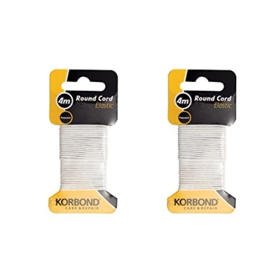 With over 60 years of trading, Korbond is the UK’s No. 1 trusted brand of sewing, crafting & clothes care tools and accessories Korbond Round Cord Elastic is ideal for a multitude of applications. This type of Elastic is ideal for dressmaking and craft projects Pack contains 2 x 4m Rolls White Elastic which can be cut to the desired length Korbond Round Cord Elastic is made from Polyester Ideal for stringing beads, baby clothing, attaching costume masks, jewellery making etc.