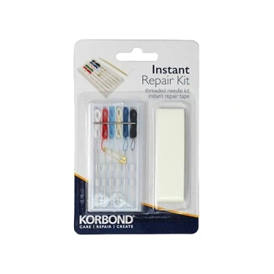 Korbond Instant Repair Kit Hemming Tape + Threaded Needle for Clothing and Upholstery Quick Repairs