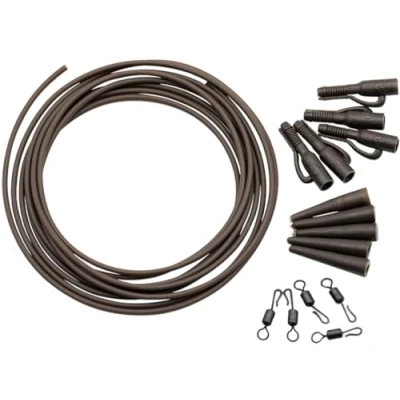The lead clip system combined with tubing is a very effective and tangle-free way to fish for carp in a variety of situations, and the BASIX Lead Clip Action Pack provides you with all the components that you need to construct five of these set-ups. Everything in this kit is camo green in colour to blend in well with the lake bed, and it includes two metres of sinking rig tube; five lead clips; five tail rubbers; and five QC swivels. Once you’ve put it together, all you need to do is clip on a rig – such as the BASIX Ready Tied Hair Rig – and add a lead, and you’re ready to cast out. Korda Basix Camo Green Lead Clip Action Pack Qty 5 KBX021