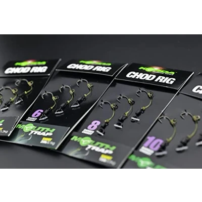 Korda Chod Rigs - Available in different lengths, hooktypes and hook sizes! - Number of pieces: 3 - Ready to use chod rigs - Choddy hooks - Made from Korda Mout Trap material - 360 degree swivel - Underline with special curved curve - Equipped with extra strong knots! The ready to use chod rigs from Korda are made from high quality Korda materials such as Choddy hooks, Mouth trap material, Rig Rings and Ring Swivels. Because these rigs have a perfect curve, the hooking is improved. All you have to do is attach a pop-up and the rig is ready to go. The 360 degree swivel allows the chod rig to move freely in relation to the main line or leader. This ensures that the chod rig is always perfectly positioned underwater!