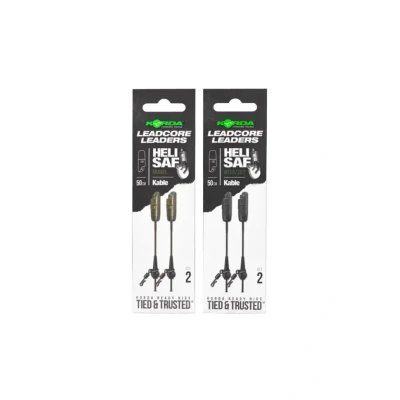 Korda Kable Leadcore Leader Heli Safe - Choice of 2 colors - Packed per 2 pieces - Length: 50cm - Made of woven Kable Leadcore - Ready to use - Includes Mini Heli-Safe system - With No-Trace safety system The Heli-Safe system is a brilliant choice for any helicopter style set-up, whether you are using a conventional rig or a chod. Now available as a ready-made leader, these 50cm leaders are made from the new tightly woven Kable Leadcore and are ready to use immediately. The 50cm versions not only offer excellent anti-tangle properties and protect fish from line damage during the fight, but are also perfect for long distance casting. The leader features the Mini Heli-Safe System, which ensures that the lead releases when needed. In addition, the No-Trace Safety System includes two spare No-Trace Beads, allowing the rig to easily release from the leader if your main line breaks. With various settings for the Mini Heli-Safe, including an option to add a collar, you can adapt this leader to different fishing situations. The Kable Heli-Safe Leadcore Leaders are available in Gravel Brown or Weed/Silt colors, come with all the necessary accessories and are a reliable choice for successful and easy rigs!