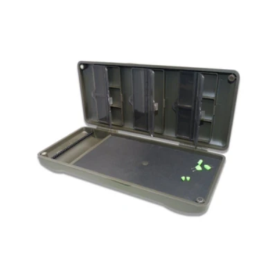 The Korda Rig Safe Combi was specifically designed for storing your rigs and small tackle items. The rigs that have already been tied can be easily hooked to the specially designed holder. The Rig Safe will store up to 20 rigs. The other side features 6 compartment that allow you to keep your small tackle items nicely organised. The box features a magnetic locking system and allows you to measure your rigs! The perfect rig box for every carp angler!