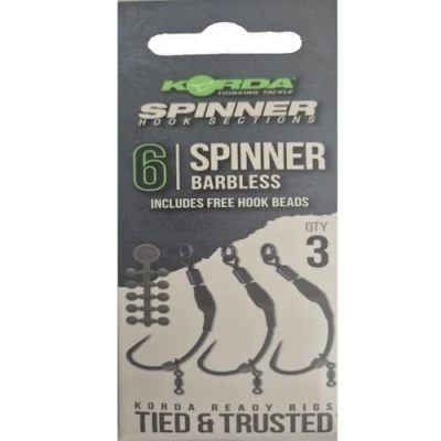 AmazonKorda Ready Tied Spinner Hook Sections: 6 Barbless - Pre-Tied Carp Fishing Rigs with Spinner Hook, Micro Swivel, and Hook Beads - Ideal for Carp Fishing with Boom or Coated Braid Material