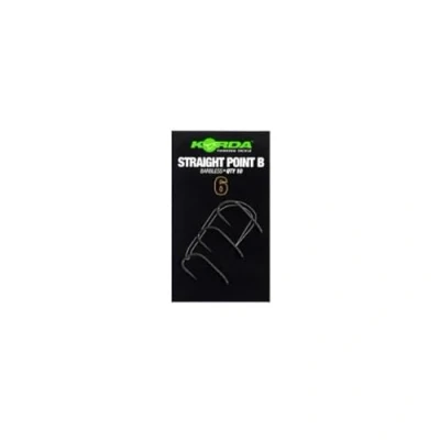 Korda Straight Point Barbless Carp Hooks - Contents: 10 pieces - Available in several hook sizes - Barbless - PTFE-coated - Widely applicable - X-gauge strength - Extended hook shank - Ultra-sharp straight point - Forged for extra strength - 15 degree inward rotated eye The Korda Straight Point Barbless carp hooks come in packs of 10 and are available in multiple hook sizes. They are PTFE-coated and can be widely used for a variety of rigs. Thanks to X-gauge strength and forged construction, they are extremely strong. The hooks have an extended hook shank, an ultra-sharp straight point and an eye turned 15 degrees inward.