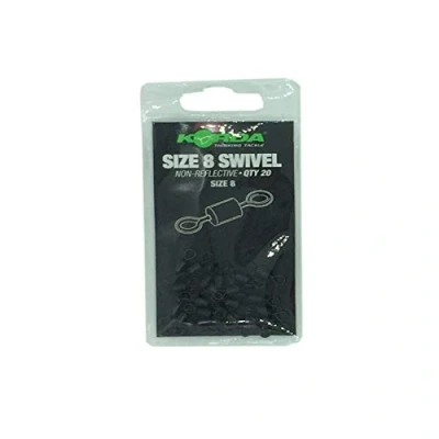 Korda Swivel - Handy swivel! - Size: 8 - Number of pieces: 20 - Very smooth running - Extremely strong - Non-reflective coating - High max pull - Hardly noticeable underwater! The swivel completes your entire set up and is actually the last connection between you and the carp. Therefore, it just has to be absolutely reliable. These new swivels are the same size as the previous version, but the max pull and the reliability are increased. In addition, the swivels have a non-reflective coating, so they are hardly noticeable underwater. The Size 8 Swivel has round eyes, which makes them stronger than swivels with angular eyes. The swivels fit perfectly in the Inline Leads, Lead Clips, Running Rigs, Shok Beads and Rubbers of Korda.