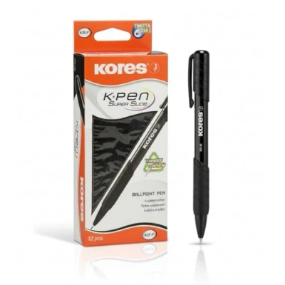 Kores Black Super Slide Ballpoint Pens K6, 0.7mm, Triangular, Point Biro, Smudge Proof Ink Back to School Supplies, Crafts and Writing Pens, Multipack Set of 12