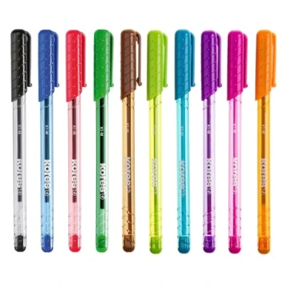 Kores Coloured Pens Ballpoint Pens, 1 mm Medium Point Biro with Smudge Proof Ink, Triangular Shape Office Supplies, School Stationery, Teacher Supplies Pack of 10 in Assorted Colours