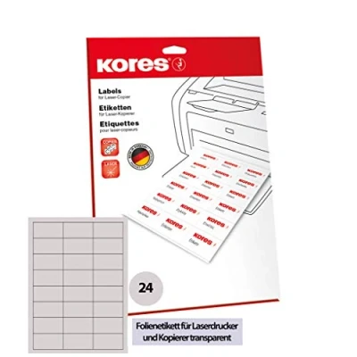 Amazon Kores Film labels for laser printers and copiers. High quality material ensures trouble-free running. The emulsion adhesive used is solvent-free. Country of origin: Germany Film labels only for laser and copier, weatherproof and washable
