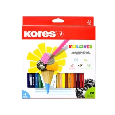 Kores Kolores, 24 Triangular Shape Colouring Pencils Coloured with Soft Lead, Shape, FSC Wood Stationery Supplies, Colour Set of in Carton Case Sharpener