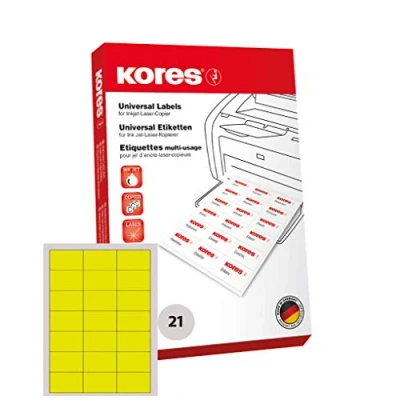 Kores L7042GE 7 x 4.23 cm A4 Universal Labels Yellow (Pack of 100 Sheets)