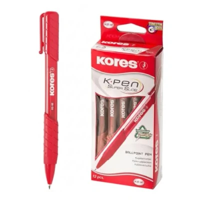 Kores Red Super Slide Ballpoint Pens K6, 1mm, Triangular, Point Biro, Smudge Proof Ink Back to School Supplies, Crafts and Writing Pens, Multipack Set of 12