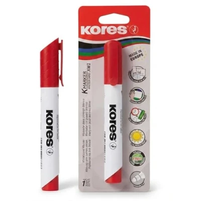 CONVENIENT: The Kores K-Marker XW1 single pack includes 1 red coloured whiteboard marker pen with a bullet tip and low-odour ink—ideal for school and office use. BULLET TIP AND LOW-ODOUR: Featuring a versatile bullet tip, this marker offers a comfortable writing experience with low-odour ink that minimises fumes. EASILY ERASED: The Kores whiteboard marker pen features a patented design and a bright red colour, making it an essential tool for school, university, and office. Its non toxic ink formula ensures that it is easily cleaned and wiped away, leaving no traces for a neat and professional finish every time. VIBRANT RED COLOUR: This set features a set of red whiteboard marker pens that you can use to create engaging and visually appealing content that truly stands out on any whiteboard helping catch the attention of your public. 48 HOURS INK RESISTANCE: Made with non-toxic components, these markers stay fresh for up to 48 hours even if left uncapped, ensuring extended use and longevity. Featuring a generous ink supply that dries quickly on non-porous surfaces and paper, along with a durable tip, they provide consistent, reliable performance for all your projects. For best results, store horizontally.