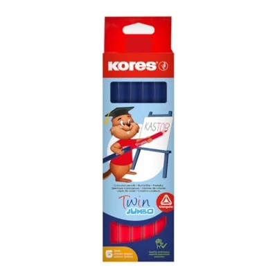 Kores Twin Jumbo 6 Triangular Shape Chunky Colouring Pencils Triangle for Kids, School Pencils, Toddler Kids Double Sided, Red and Blue Set of