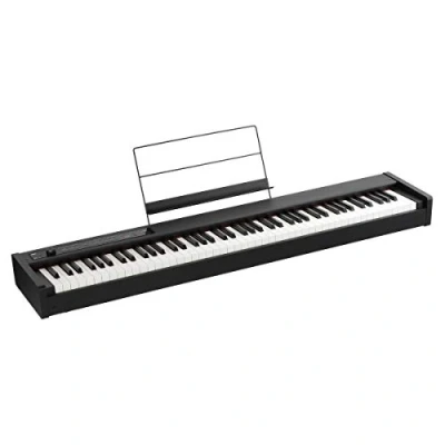 The playing feel of a grand piano, on stage or in your room for pianists and keyboardists of any genre. Japanese made high quality 88 Key RH3 real weighted graded hammer action keyboard with touch control Thirty high quality sounds using cutting edge technology to reproduce the sound of a Grand Piano Compact body for ultimate portability weighing 16Kg Music rest, power adaptor and dedicated pedal for stage play are included.