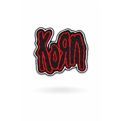 Korn Red Silver Metalband Patch Badge Embroidered Iron on Applique Accessory