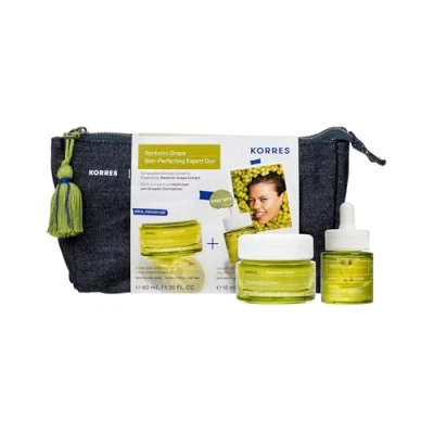 KORRES Santorini Grape Pore Refining Expert Duo, Value Set of Day Cream 40 ml and Elixir 15 for Velvety Soft Skin a Radiant Glow, Silicone Paraben Free, Vegan