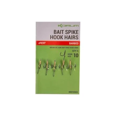 Korum Bait Spike Hook Hairs ar designed to presenting boilies, pop-ups and wafters neatly and maximise hook up rates The Hook Hairs are constructed a 7mm barbed bait spike whipped to an Xpert Power hook The Hook Hairs are easy to attach and strong enough for even the biggest specimen carp or barbel