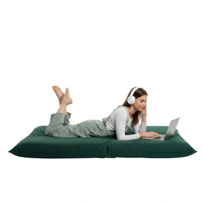 Kosiproducts Beanbag Floor Cushion Pillow indoor outdoor garden Water Resistant 100% soft luxury Polyester Fabric (Medium [84cm x 65cm], Green)