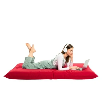 Kosiproducts Beanbag Floor Cushion Pillow indoor outdoor garden Water Resistant 100% soft luxury Polyester Fabric (Medium [84cm x 65cm], Red)