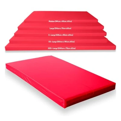 [GYMNASTICS CRASH MATS] are perfect for any professional or beginner gymnast for home, office or garden use, ideal for inside or outdoors practice. The 9CM Thick crash mats ensures safety for the gymnast and are perfect to use in any situation. The Crash Mats are designed to suit the different requirements of landing areas from Gymnastics, High Jump, Stunts, trapeze to name a few. [THICK CRASH MATS] with its 9CM Medium Density Foam provides for an ultra soft surface ensuring any falls, jumps, landing are cushioned giving extra safety for safe landing. Gymnastics & Sports crash mats are of the highest quality that will last for years. We manufacture all gym crash mats in our warehouse in Greater Manchester, UK with the greatest attention to detail and are amongst the most popular as well. [MATERIAL:] The gymnastics crash mats are made from Medium density 5cm and 5cm Reconstituted foam, covered 235gsm 400 Denier Polyester PU, Water Resistant and easy to wipe down, store and carry. [DIMENSIONS;] Medium - 84cm x 68 cm x 9CM ; Large - 114cm x 80cm x 9CM; X-Large - 136cm x 84cm x 9CM; XX-Large 150cm x 90cm x 9CM, XXX-Large 200cm x 75cm x 9CM. [USES OF GYM MATS] Our thick gym mats are used widely by gymnastics professionals, would be gymnasts, schools, nurseries, home gyms, office gyms, fitness gyms as well indoors and outdoors. Some of the uses include: Gymnastics landing, Tumbling & fall protection, Aerial performance protection, Under indoor rock climbing walls. Training classes in law enforcement, police academies, fire fighting, and military combat training facilities. For fall protection during aerial training. Martial arts and other fight takedown training. For physical therapy and rehabilitation, crash and fall protection around exercise equipment or anywhere else where patients may fall and get injured during sessions. Training classes in law enforcement, police academies, fire fighting, and military combat training facilities. Nurseries, Schools, Playgroups to create a safe environment for children. Soundproofing upper floors if used for exercising, training, weightlifting.