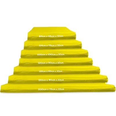 [GYMNASTICS CRASH MATS] are perfect for any professional or beginner gymnast for home, office or garden use, ideal for inside or outdoors practice. The 10cm Thick crash mats ensures safety for the gymnast and are perfect to use in any situation. The Crash Mats are designed to suit the different requirements of landing areas from Gymnastics, High Jump, Stunts, trapeze to name a few. [THICK CRASH MATS] with its 10cm Medium Density Foam provides for an ultra soft surface ensuring any falls, jumps, landing are cushioned giving extra safety for safe landing. Gymnastics & Sports crash mats are of the highest quality that will last for years. We manufacture all gym crash mats in our warehouse in Greater Manchester, UK with the greatest attention to detail and are amongst the most popular as well. [MATERIAL:] The gymnastics crash mats are made from Medium density 5cm and 5cm Reconstituted foam, covered 235gsm 400 Denier Polyester PU, Water Resistant and easy to wipe down, store and carry. [DIMENSIONS;] Medium - 84cm x 68 cm x 10cm ; Large - 114cm x 80cm x 10cm; X-Large - 136cm x 84cm x 10cm; XX-Large 150cm x 90cm x 10cm, XXX-Large 200cm x 75cm x 10cm. [USES OF GYM MATS] Our thick gym mats are used widely by gymnastics professionals, would be gymnasts, schools, nurseries, home gyms, office gyms, fitness gyms as well indoors and outdoors. Some of the uses include: Gymnastics landing, Tumbling & fall protection, Aerial performance protection, Under indoor rock climbing walls. Training classes in law enforcement, police academies, fire fighting, and military combat training facilities. For fall protection during aerial training. Martial arts and other fight takedown training. For physical therapy and rehabilitation, crash and fall protection around exercise equipment or anywhere else where patients may fall and get injured during sessions. Training classes in law enforcement, police academies, fire fighting, and military combat training facilities. Nurseries, Schools, Playgroups to create a safe environment for children. Soundproofing upper floors if used for exercising, training, weightlifting.