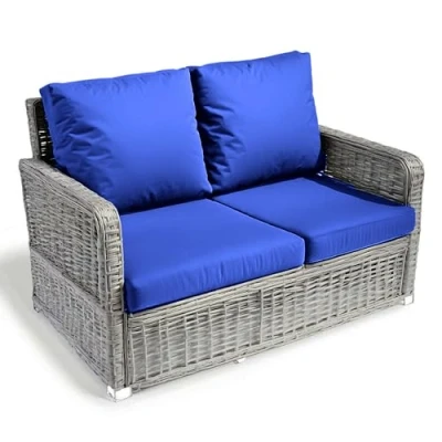 Kosiproducts Replacement Rattan Cushion Seat Cushions Garden Patio Furniture [Navy Blue, 2 Seats + Cushions] Furntiure Not Included