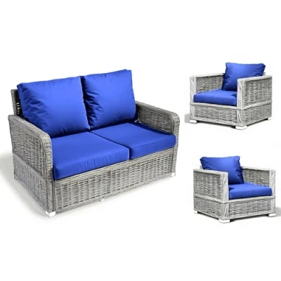 Kosiproducts Replacement Rattan Cushion Seat Cushions Garden Patio Furniture [Royal Blue, 4 Seats + Cushions] Furntiure Not Included