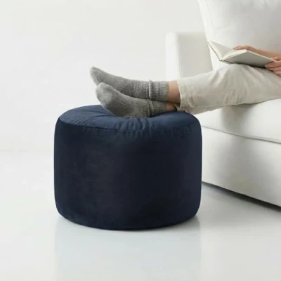Kosiproducts Velvet Beanbag Ottoman Round Circle Footstool Pouf Chair Pouffe soft luxury Polyester (Navy Blue 45x45x45)