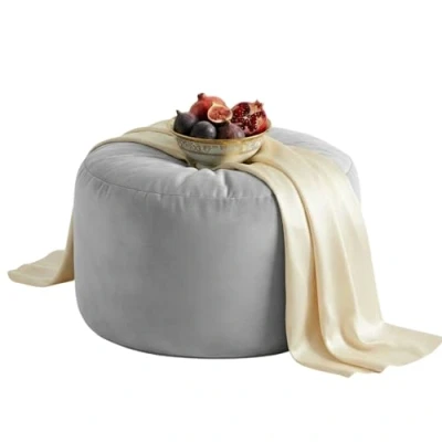 Kosiproducts Velvet Beanbag Ottoman Round Circle Footstool Pouf Chair Pouffe soft luxury Polyester (Silver 45x45x45)