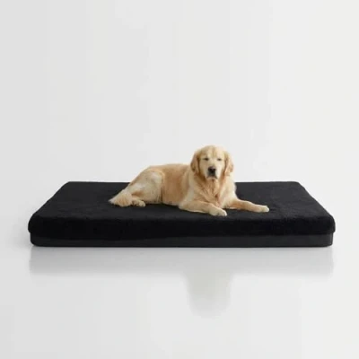 Kosiproducts Waterproof Dog Bed Mattress, Foam, 300gsm Soft Polyester Sherpa Fleece Fabric, Cage Crate Mat, Pet Bed, Removable and Washable Cover [135cm x 83cm 10cm, Black]