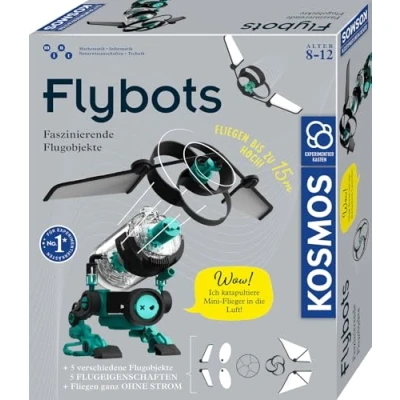 This is knowledge and fun in one: with the Flybots, the fascination of flying can be experienced up close and hours of fun are guaranteed! Once assembled, the five different flying objects behave very different in the air and glide, flutter or fly curves. The launching robot does not require batteries and catapults the Flybots up to ten metres at the touch of a button thanks to its spring The instructions not only guide through the assembly of the set and keep exciting information on the topics of flies and feathers, but also includes many Flybot game ideas. With this Kosmos set, craft and flying enthusiasts from the age of eight get their money's worth and get a playful insight into the world of flying., Manufacturer: KOSMOS